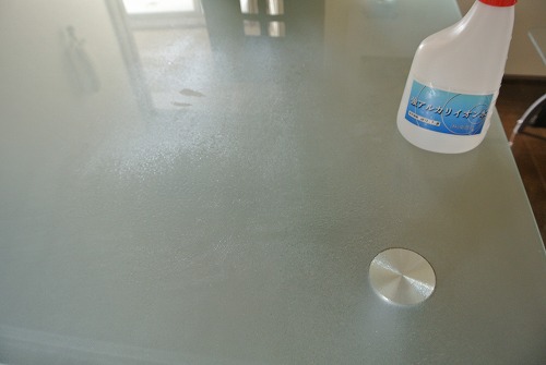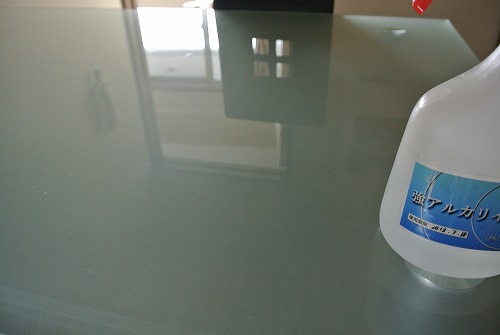 強アルカリイオン水を使用したガラステーブルの清掃です