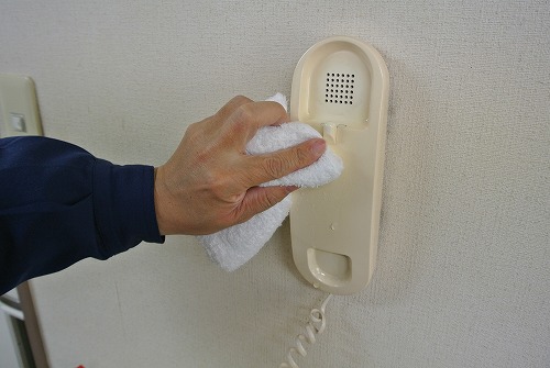 アルカリイオン電解水使用によるインターホンの掃除(清掃) ・除菌  東建社 東京