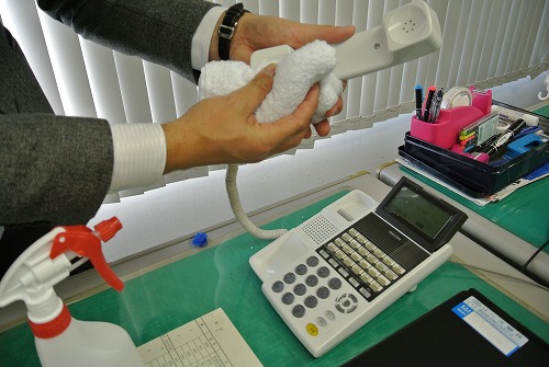 写真のような電話機の掃除をアルカリイオン電解水で行うことで、雑菌やウイルスの繁殖も予防可能です。