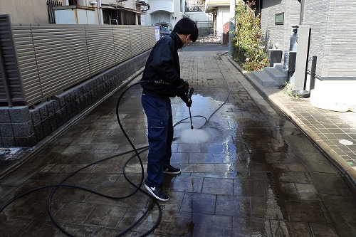 インターロッキングの上に土砂汚れがかなり堆積していることに驚きました