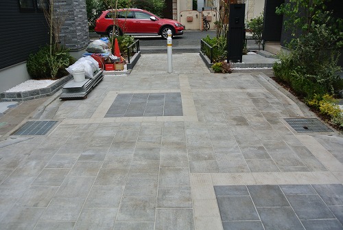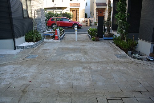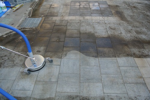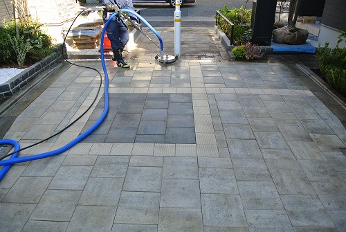 全体的に汚れてしまったインターロッキングの洗浄を実施しました