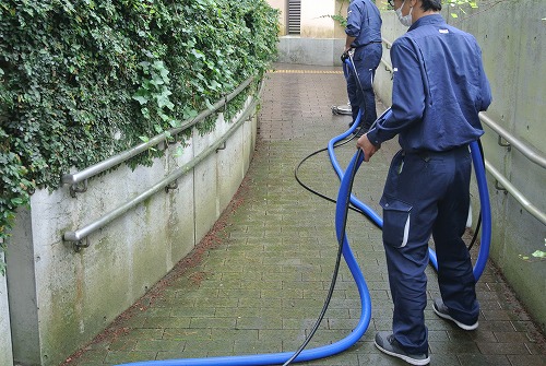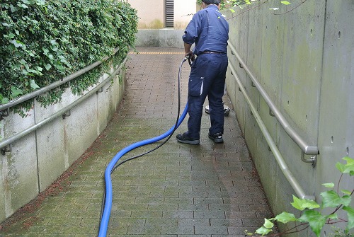 外構インターロッキングの洗浄作業です