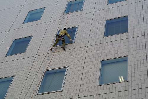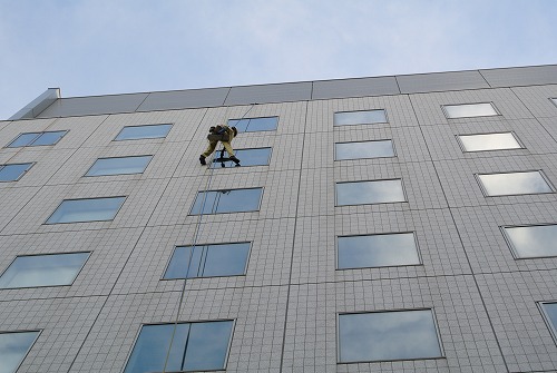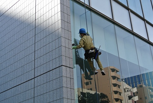 ガラス清掃の対象となるオフィスビルは、高層ビルのため