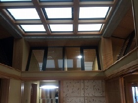 吹き抜けの窓を水拭きして埃や汚れを落とします。