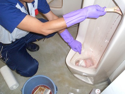 立川市 オフィスビル トイレ 尿石落とし作業