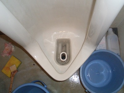 今回は、トイレの小便器の尿石落とし作業を行いました。