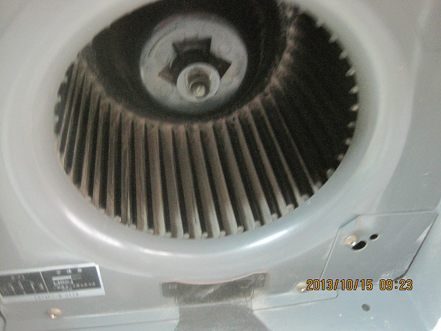 換気扇内のシロッコファン(円盤上に多数の羽を角度を持たせて垂直に立て、ドラム状にしたもの)には埃がビッシリとついていました。 すべてを取り外して、弱アルカリ性の洗剤で汚れを取りました。