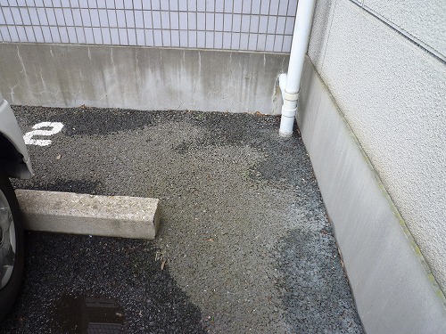 駐車場脇は、このように落ち葉やゴミがたまりやすくなります。