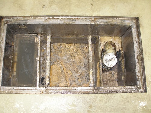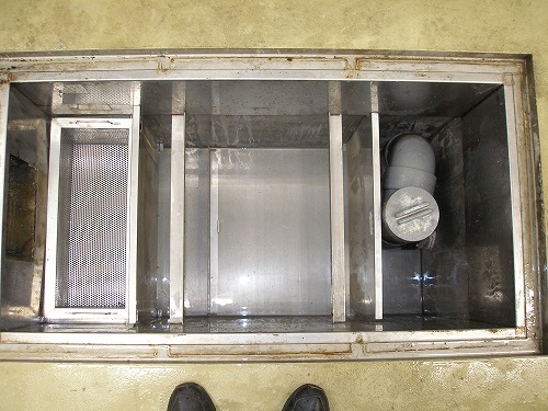 清掃前のグリストラップ内部です