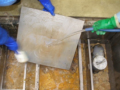 バキュームで汚泥を吸い取ります