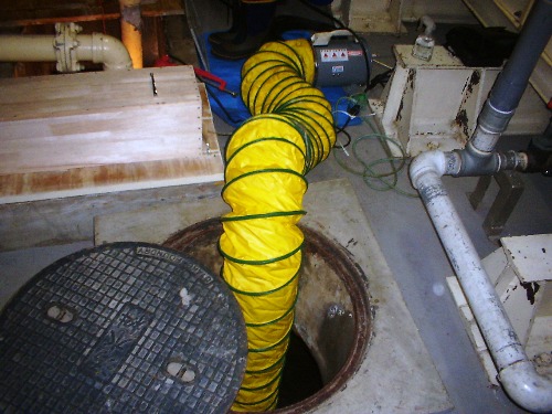 作業前には水槽内の換気と酸素濃度のチェックを行います