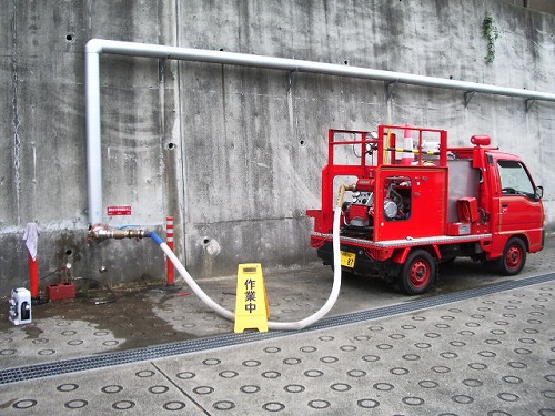 立川市の福祉施設で連結送水管の耐圧試験を行いました。