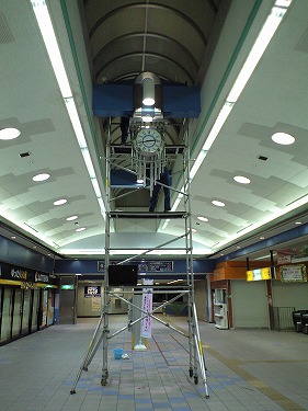今回は、東京都西東京市内にある駅構内の天井に吊られている、大型の装飾時計の清掃です。