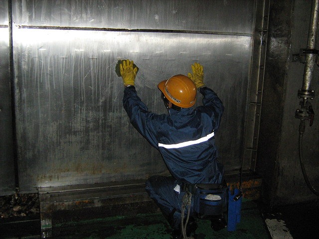 渋谷区にある廃棄物処理場の廃棄物投入口の鉄扉の洗浄を行いました。