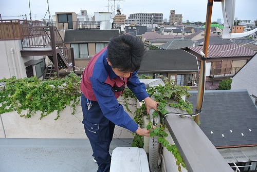 屋上から作業開始。