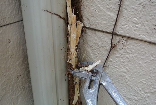つたの力の凄まじさを物語っております。壁面破損です。