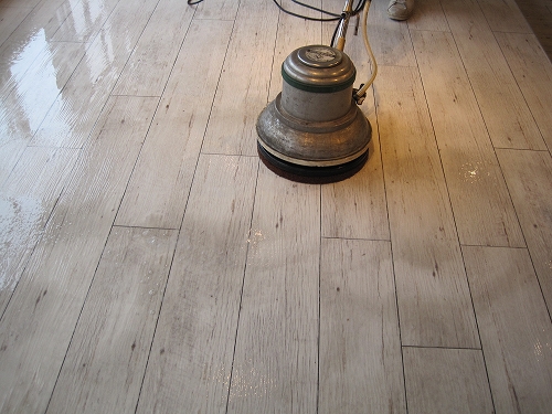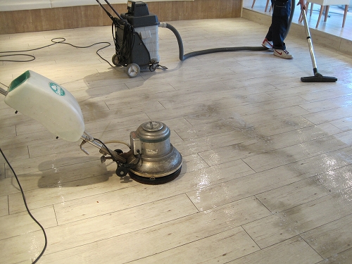 レストランの床面洗浄及びワックス塗布作業
