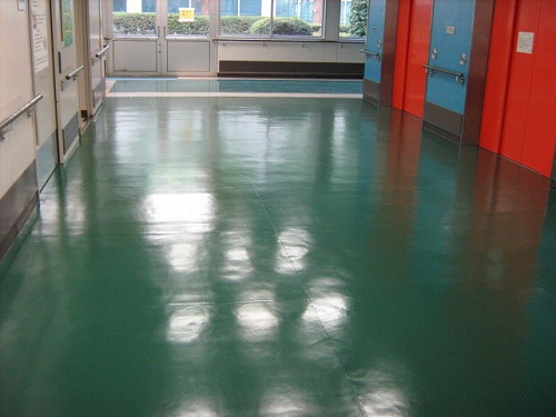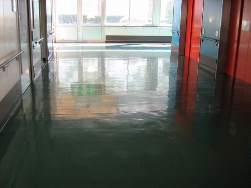 所沢市の医療施設内にある中央廊下を剥離洗浄しました。