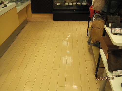 デパート内のテナント様のため、床面の状態をきれいに、かつ高輝度な艶を要求されます。