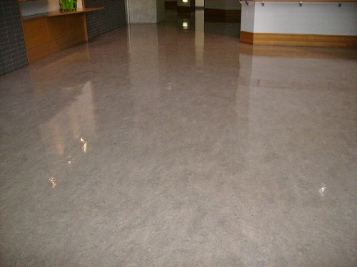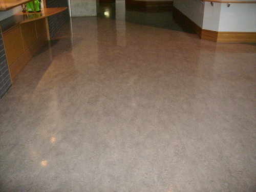 出入り口周辺はワックス層が削られて光沢を失っていましたが、今回の作業で見栄え良く復帰しました。