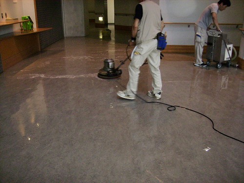 所沢訓練施設にあるホール・ビニール床の剥離洗浄を行いました。