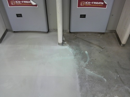 東京都八王子市駅前ATMのビニールシート床ワックス剥離清掃です
