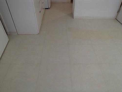 普通に洗浄してワックスを塗るだけでは綺麗にならないこのような移動跡も、剥離洗浄を行えば見違えるように綺麗になります