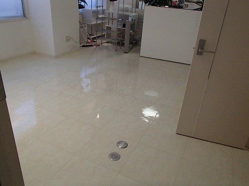 今回は東京都渋谷区の美容系店舗様より、床面Pタイルの剥離洗浄とワックス塗布のご依頼でした