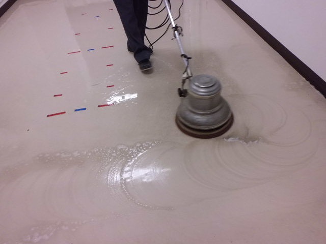 その後、バキュームで洗浄液を吸い上げモップで拭きワックスを塗ることによってきれいな床を維持することができます。