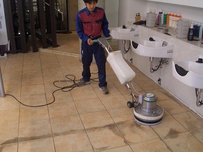 渋谷区原宿 美容室床面洗浄及ワックス塗布