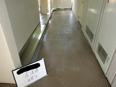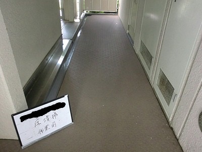 今回は、都内にあるマンションの共用部分床面洗浄を行いました。