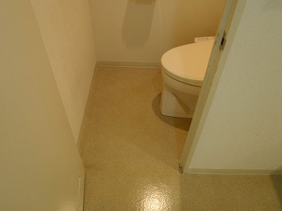 また、トイレにも角は手作業で洗浄をし、平面はポリッシャーを使い汚れを落とし綺麗な弾性床にすることができました。