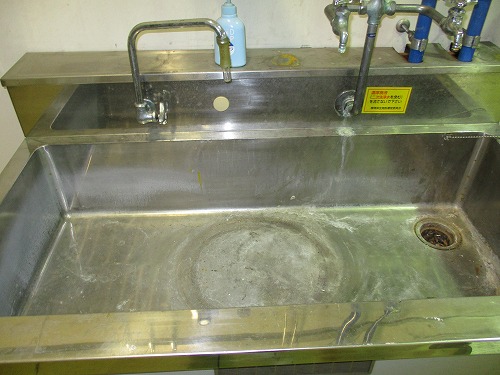 流し台は水アカと石けんカスと錆汚れがあつたので、汚れにあわせたクリーナーと専用パットで汚れを除去しました。