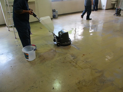 剥離清掃は通常の洗剤を使っての作業と違い、手間は、かかりますが