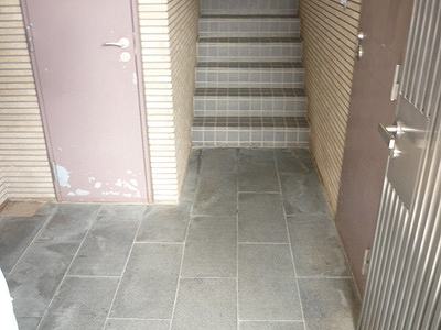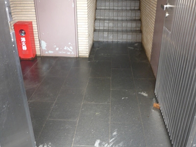 練馬区にございますオフィスビルの裏通路の床面洗浄を行いました。