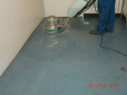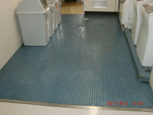 世田谷区にある公共施設の石タイル床面洗浄を行いました。