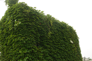 つたのイメージは一見、ひょろひょろっと伸びている感じがあります。しかし、建物を覆うまでに成長したつたの根元付近、建物の1F廻りでは、枝は直径3~5cmまで大きくなります。木の枝と変わりません。また、どこまでもぐんぐん成長していきます。