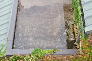 屋上などでは落ち枝、枯れ葉により排水溝を埋め、スムーズに排水されず、雨水による水たまりが発生します。エアコンの室外機など機械類や、屋上防水部にも影響を与え、雨漏れの原因になる可能性があります。