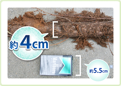 これは木の枝ではなく、つたです。建物の2F、3Fを覆うまでに成長したつたの根元では、こんなに太く成長します。