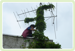 つたの成長に限界はないのでしょうか。この建物ではぐんぐん伸びて、最終的にはアンテナを