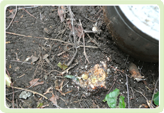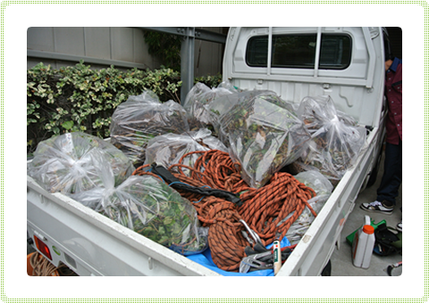 つた除去の最後には根元を切断し、除草剤をかけて処理終了となります。